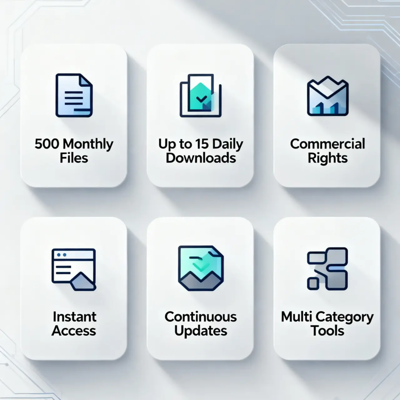 Having 500 files every month with commercial rights changed my entire workflow. I build strategies faster, deliver client work with confidence and save a significant amount. The value is unbeatable for the price.